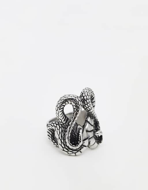 ASOS DESIGN waterproof stainless steel cobra ring in burnished silver tone