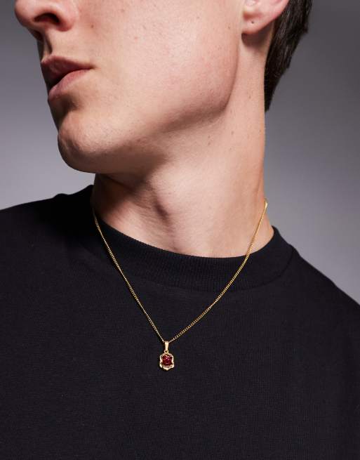 ASOS DESIGN waterproof stainless steel faux ruby pendant necklace in gold