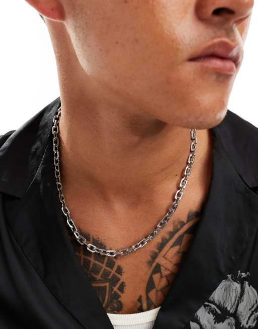 ASOS DESIGN waterproof stainless steel link chain necklace in silver