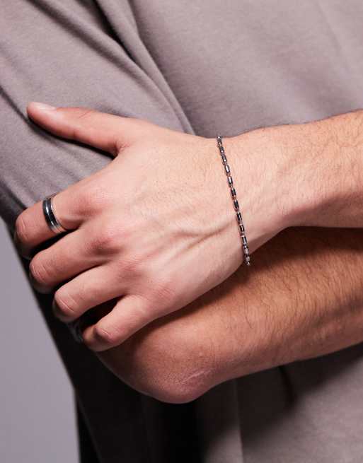 ASOS DESIGN waterproof stainless steel oval ball chain bracelet in silver