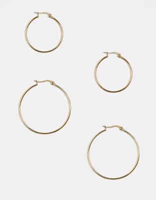 ASOS DESIGN waterproof stainless steel pack of 2 tubular hoop earrings in gold tone