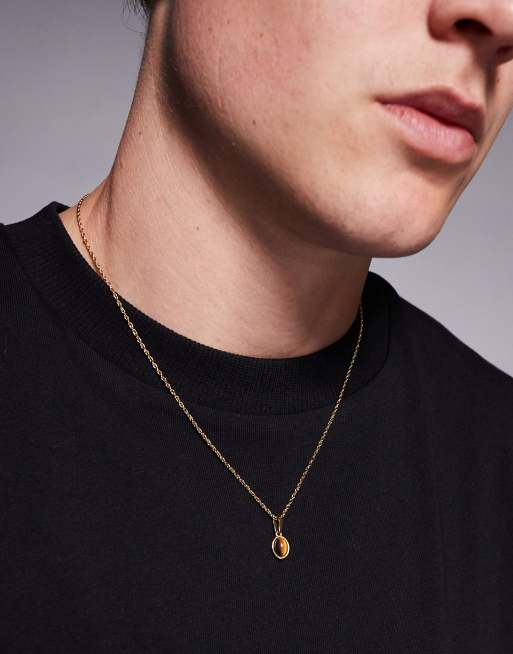 ASOS DESIGN waterproof stainless steel semi-precious tigers eye oval pendant necklace in gold