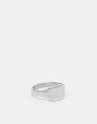 ASOS DESIGN waterproof stainless steel signet ring in silver