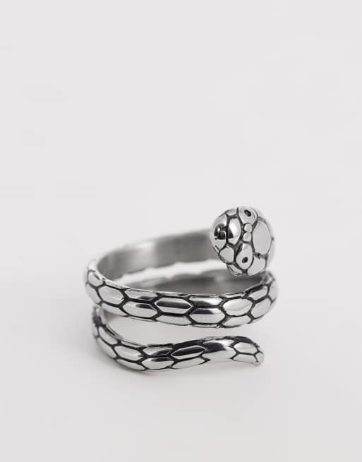 ASOS DESIGN waterproof stainless steel snake wrap around ring in silver