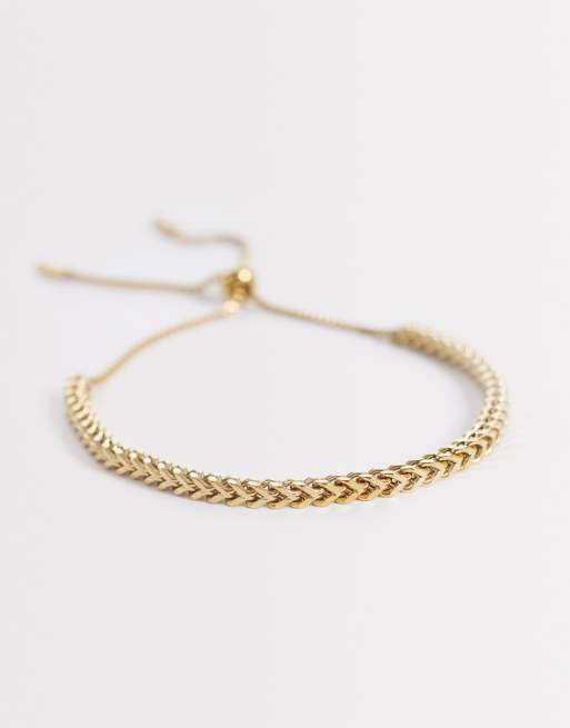 ASOS DESIGN waterproof stainless steel square box chain puller bracelet in gold