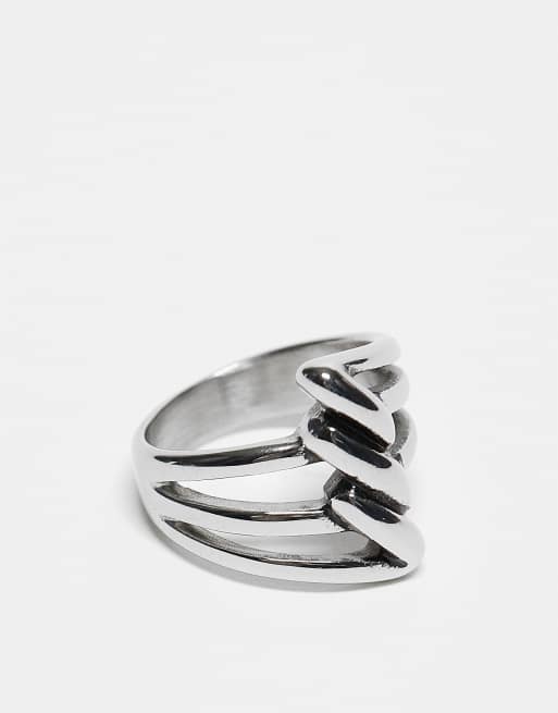 ASOS DESIGN waterproof stainless steel twist detail wrap ring in silver