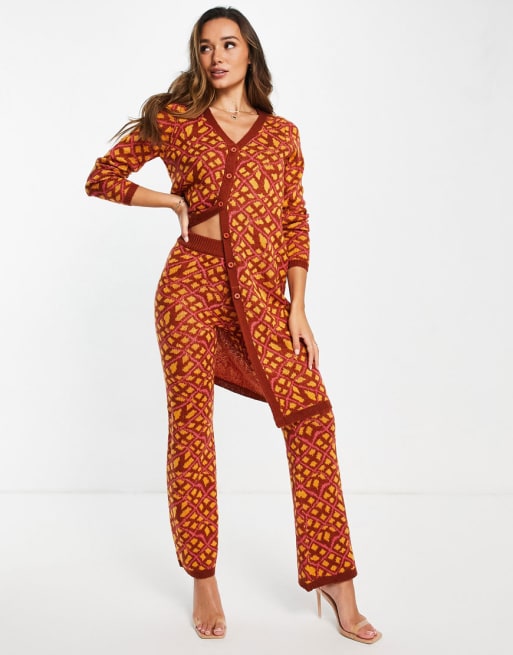 ASOS DESIGN wavy check knitted co-ord set in pink