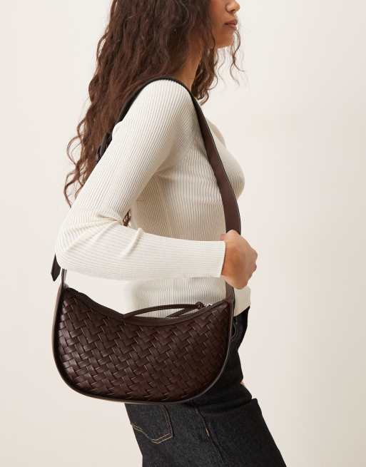 ASOS DESIGN weave adjustable sling bag in chocolate