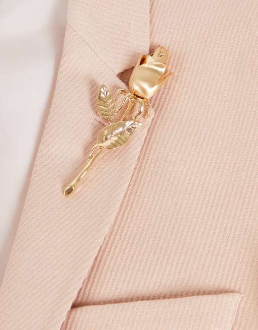 ASOS DESIGN wedding lapel pin with 3D rose in brushed gold tone