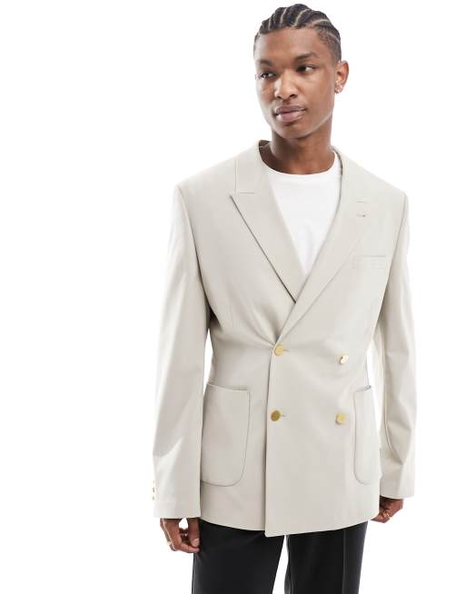 ASOS DESIGN wedding skinny blazer with gold buttons in stone