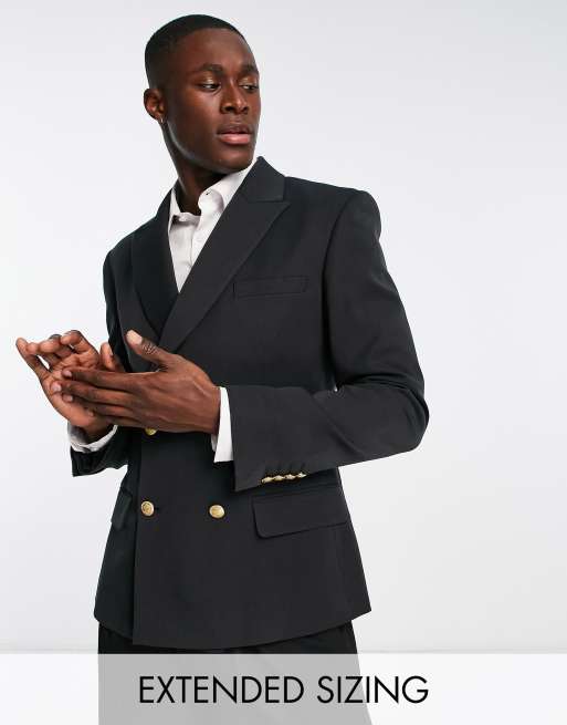 ASOS DESIGN wedding skinny double breasted blazer with gold buttons in black