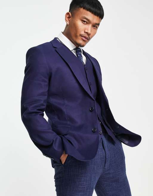 ASOS DESIGN wedding skinny linen mix blazer in navy