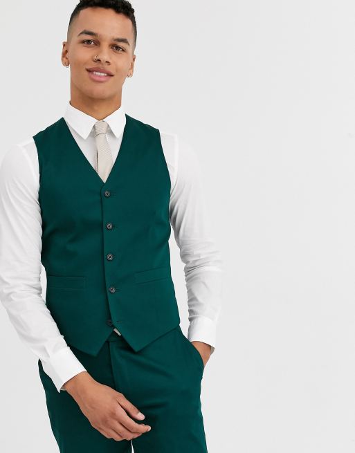 ASOS DESIGN wedding skinny suit waistcoat in cotton in forest green