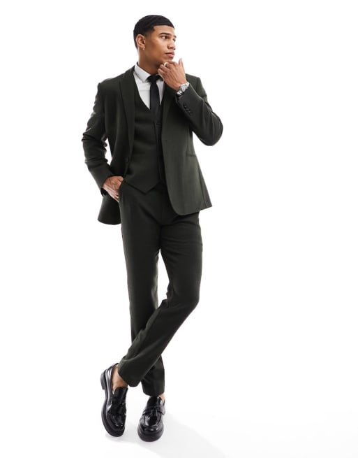 ASOS DESIGN wedding skinny wool mix suit in forrest basketweave texture