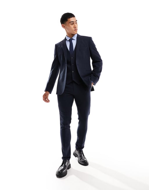 ASOS DESIGN wedding skinny wool mix suit in navy basketweave texture