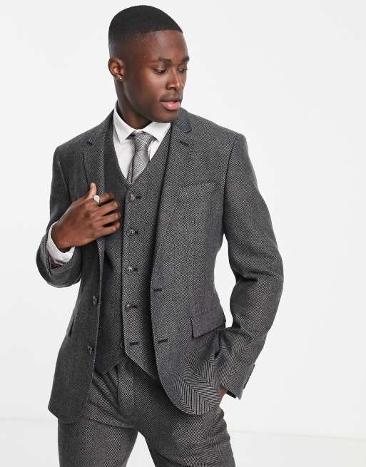 ASOS DESIGN wedding skinny wool mix suit jacket in charcoal herringbone