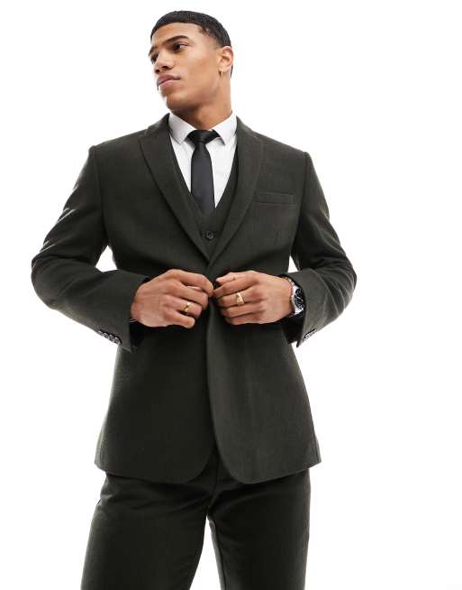 ASOS DESIGN wedding skinny wool mix suit jacket in forrest basketweave texture