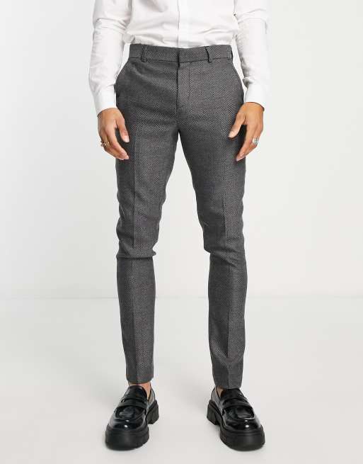 ASOS DESIGN wedding skinny wool mix suit trousers in charcoal herringbone