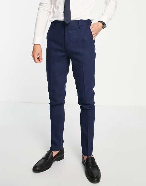 ASOS DESIGN wedding skinny wool mix suit trousers in navy herringbone