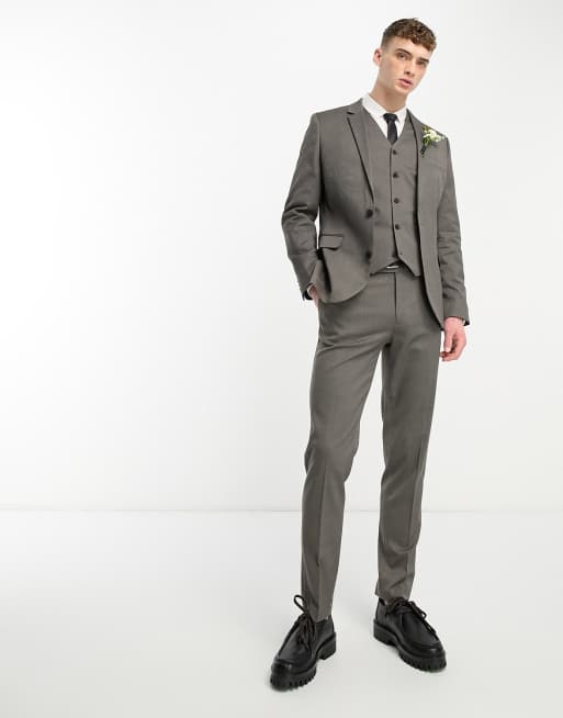 ASOS DESIGN wedding slim suit in brown texture