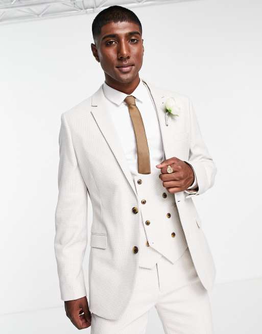 ASOS DESIGN wedding slim suit jacket in stone birdseye texture