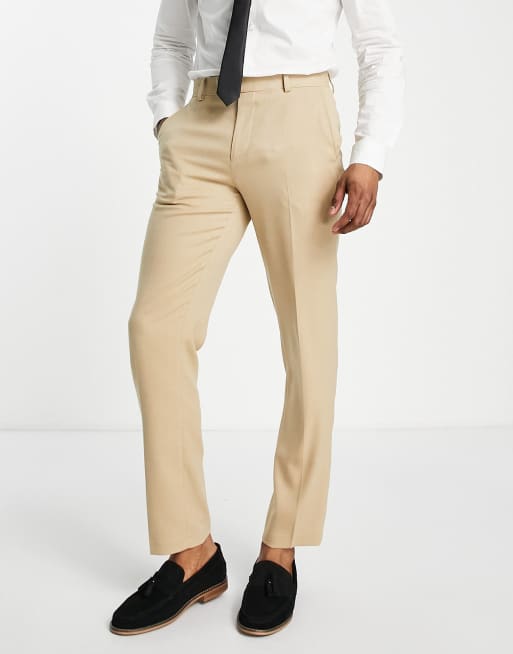 ASOS DESIGN wedding slim suit trousers in stone micro texture