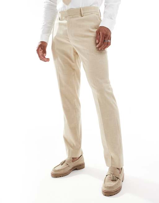 ASOS DESIGN wedding slim suit trousers with linen in stone