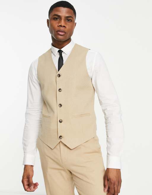 ASOS DESIGN wedding slim waistcoat in stone micro texture