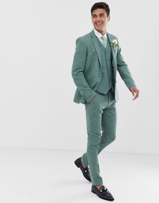 ASOS DESIGN wedding super skinny suit in green wool blend mini check