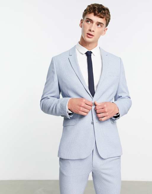 ASOS DESIGN wedding super skinny suit jacket in birdseye texture in dusky blue