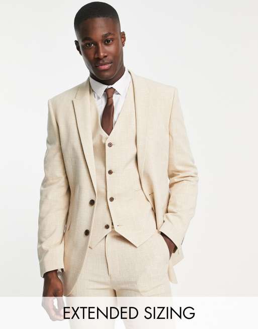 ASOS DESIGN wedding super skinny suit jacket in stone crosshatch