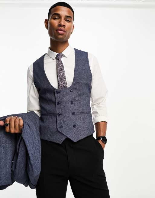 ASOS DESIGN wedding super skinny suit waistcoat in dark blue micro texture