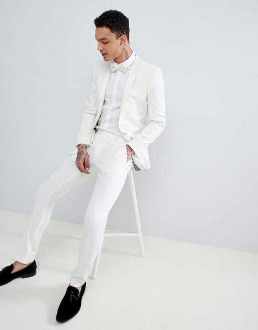 ASOS DESIGN wedding super skinny tuxedo in cream with tonal lapel