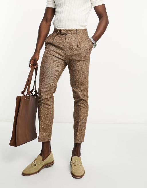 ASOS DESIGN wedding tapered wool mix smart trousers in tweed brown