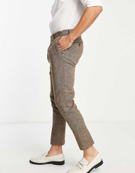 ASOS DESIGN wedding tapered wool mix smart trousers in tweed brown