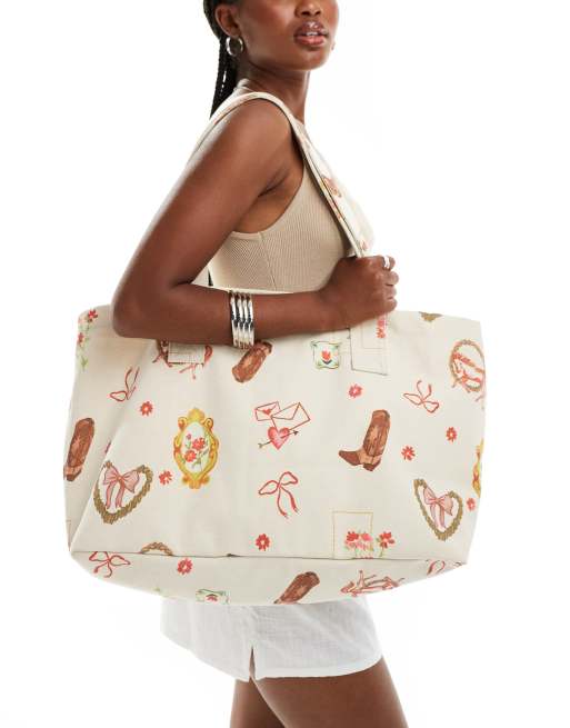 ASOS DESIGN western print canvas tote bag in multi