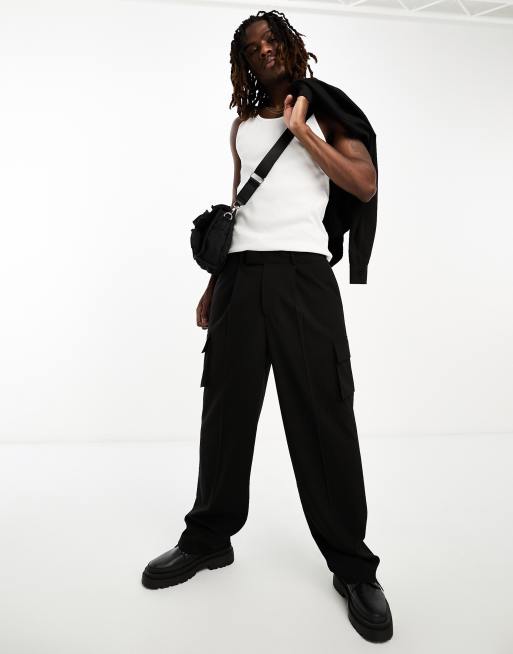 ASOS DESIGN wide cargo pocket co-ord trouser in black
