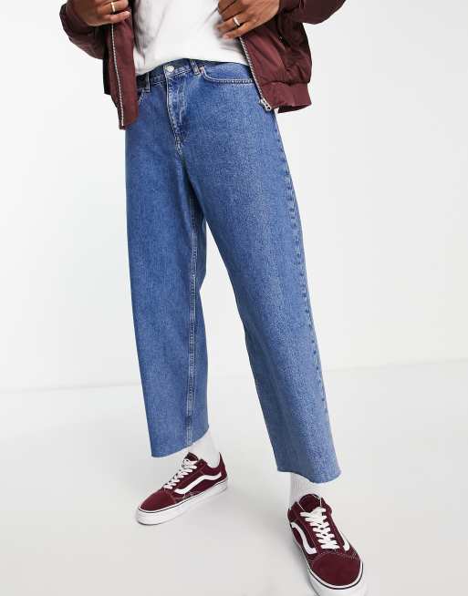 ASOS DESIGN wide crop jeans in mid wash with raw hem