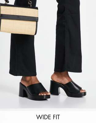 ASOS DESIGN Wide Fit Harper heeled mules in black