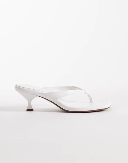 ASOS DESIGN Wide Fit Havana toe thong kitten heel sandals in white