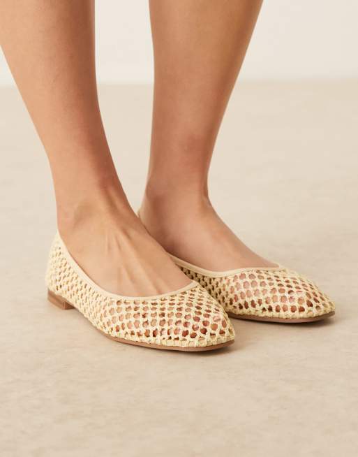 ASOS DESIGN Wide Fit Lagoon weave ballet shoes in buttermilk