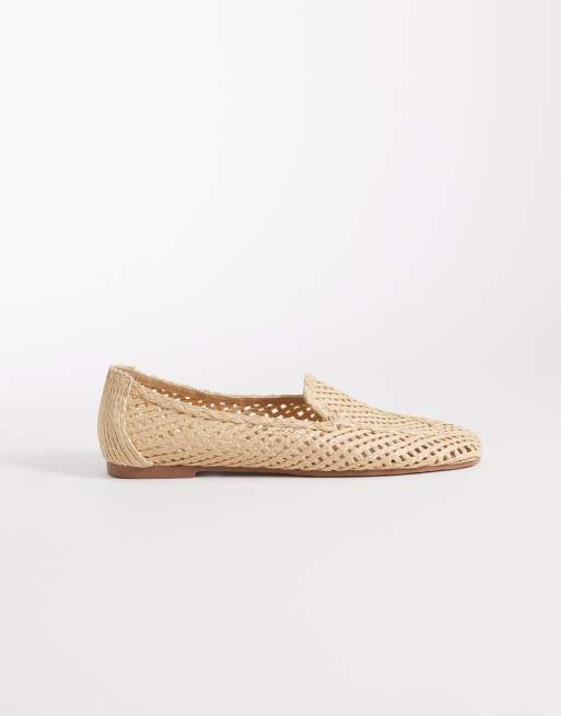 ASOS DESIGN Wide Fit Maestro raffia detail loafers in natural