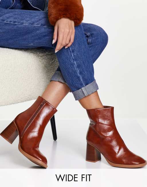ASOS DESIGN Wide Fit Revival round toe block heeled boots in tan