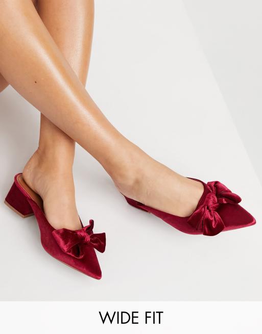 ASOS DESIGN Wide Fit Summer bow mid heeled mules in pink