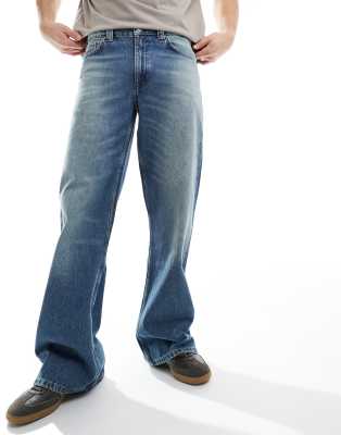 ASOS DESIGN wide flare jeans in light wash blue