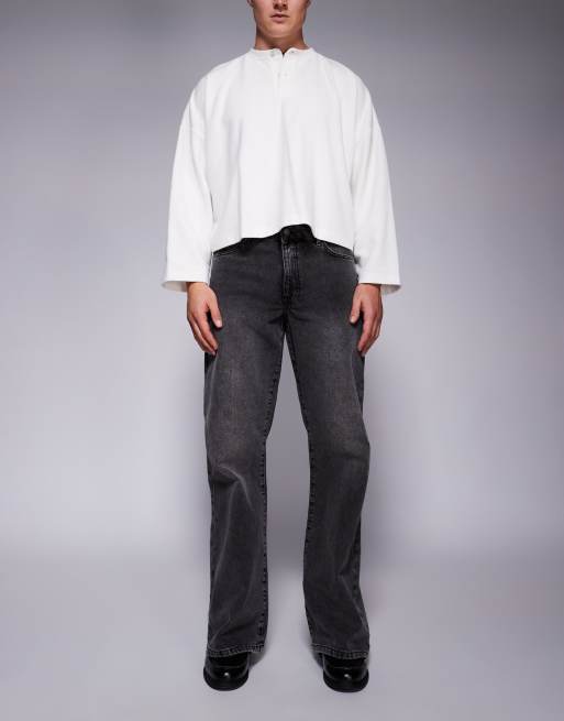 ASOS DESIGN wide flare jeans in washed black