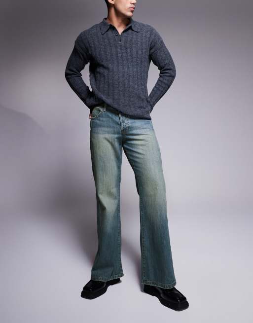 ASOS DESIGN wide flare jeans with seam detail in mid wash blue