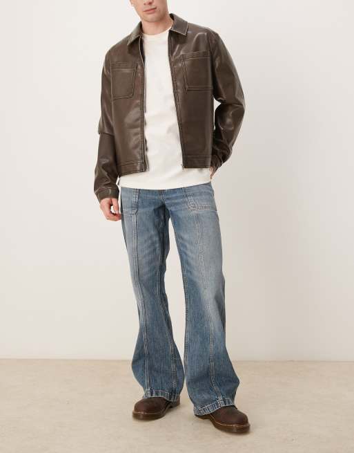 ASOS DESIGN wide flare jeans with seam detail in mid wash blue