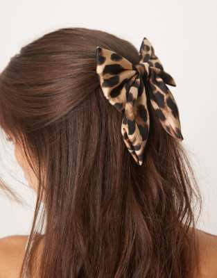 ASOS DESIGN wide hair bow clip in leopard print