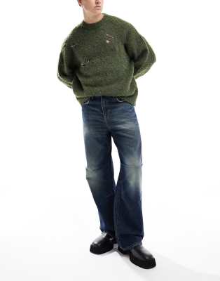 ASOS DESIGN wide hem baggy jeans with dart detail in dark wash blue